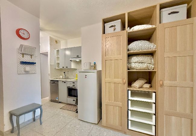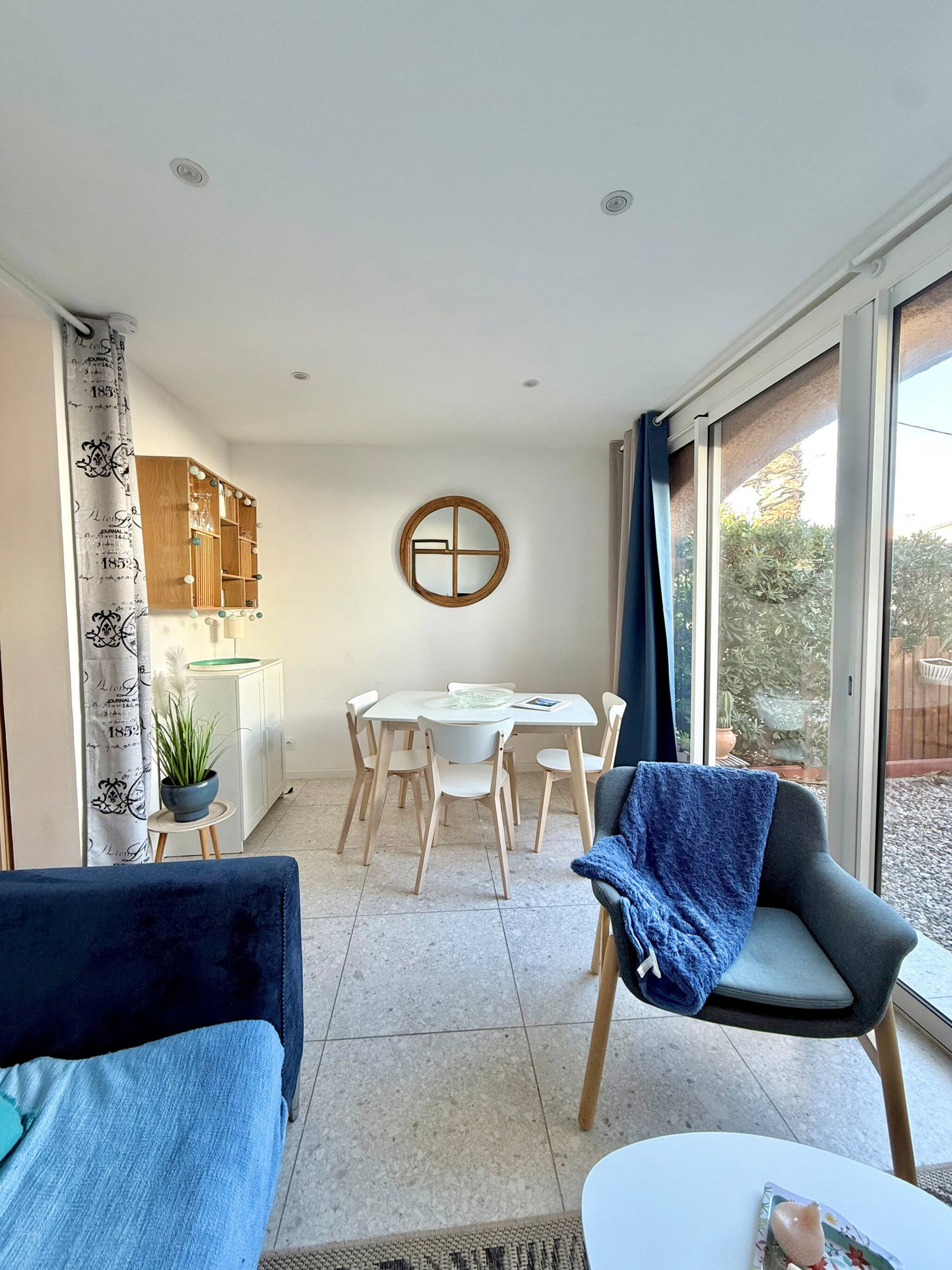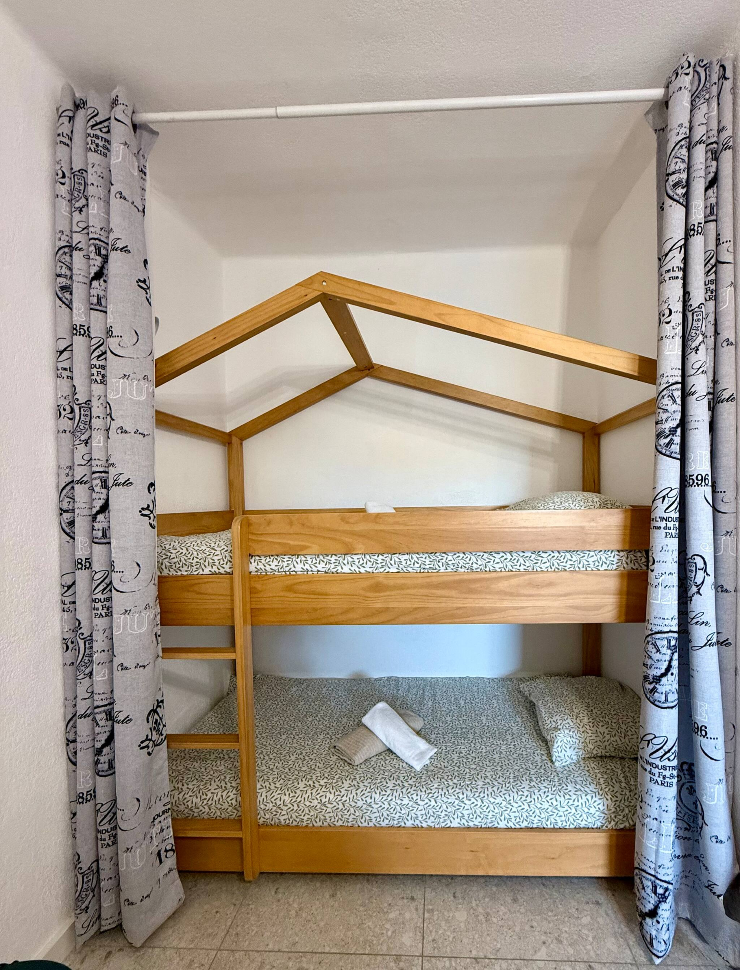 El apartamento en Hyères posee 2 dormitorio(s) y capacidad para 4 personas. Alojamiento de 35 m² acogedor y exterior. Se encuentra a 100 m de la playa de arena "Plage de la Bergerie", 3 km del aeropuerto "Aéroport Hyeres / Toulon" y está ubicado en una zona ideal para familias y junto al mar.Dispone de parcela vallada, lavadora, acceso internet (wifi), calefacción central, aire acondicionado, parking aire libre en mismo edificio, 1 Televisor.La cocina americana, de vitrocerámica, está equipada con nevera, microondas, horno, congelador, lavavajillas, vajilla/cubertería, utensilios/cocina, cafetera, tostadora y hervidor de agua.