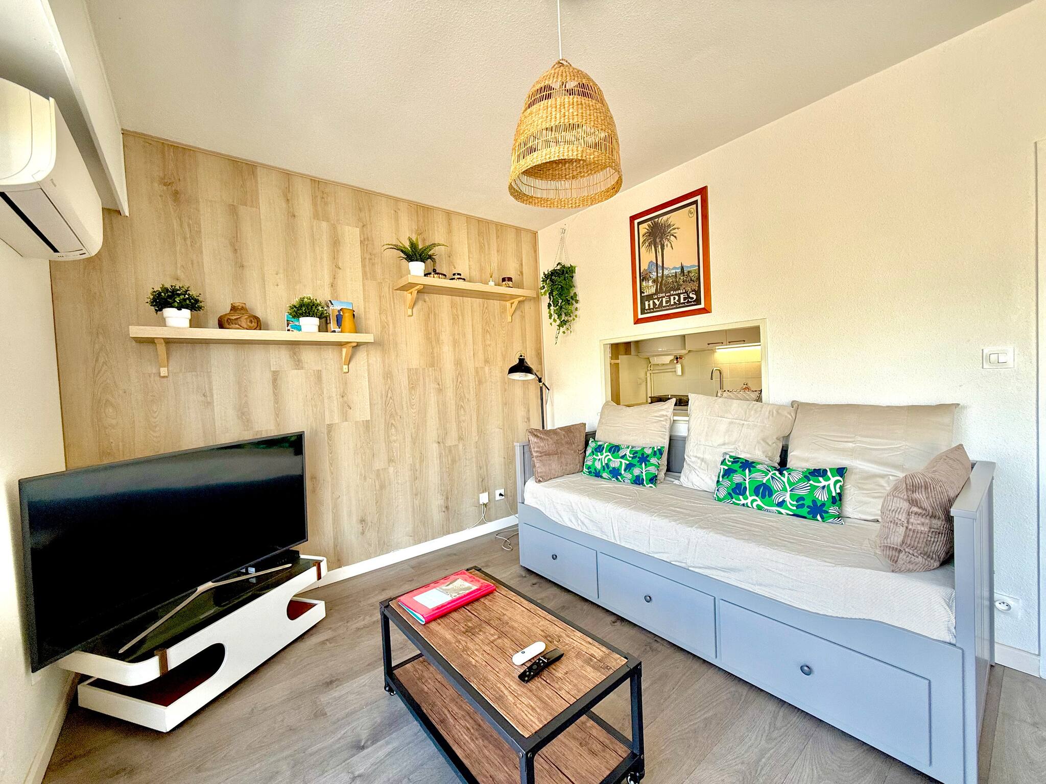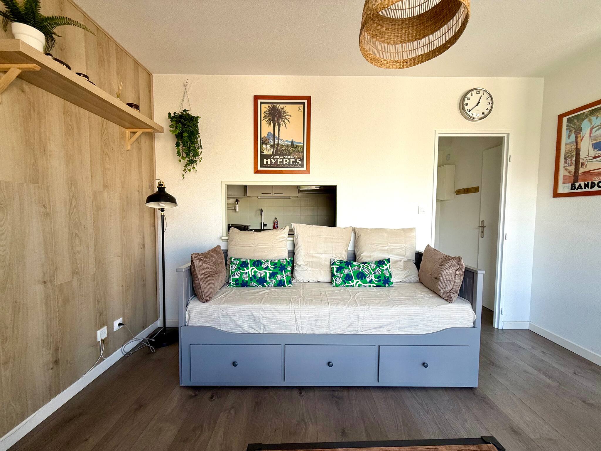 Estudio renovado con aire acondicionado y wifi, ubicado en la tercera planta de una residencia segura con ascensor, en el Puerto de Hyères. Ideal para una estancia en solitario, en pareja o en familia. Ubicación perfecta, a dos pasos de las playas, restaurantes, comercios y transportes. Pequeño balcón con vista al mar para disfrutar de sus desayunos al sol