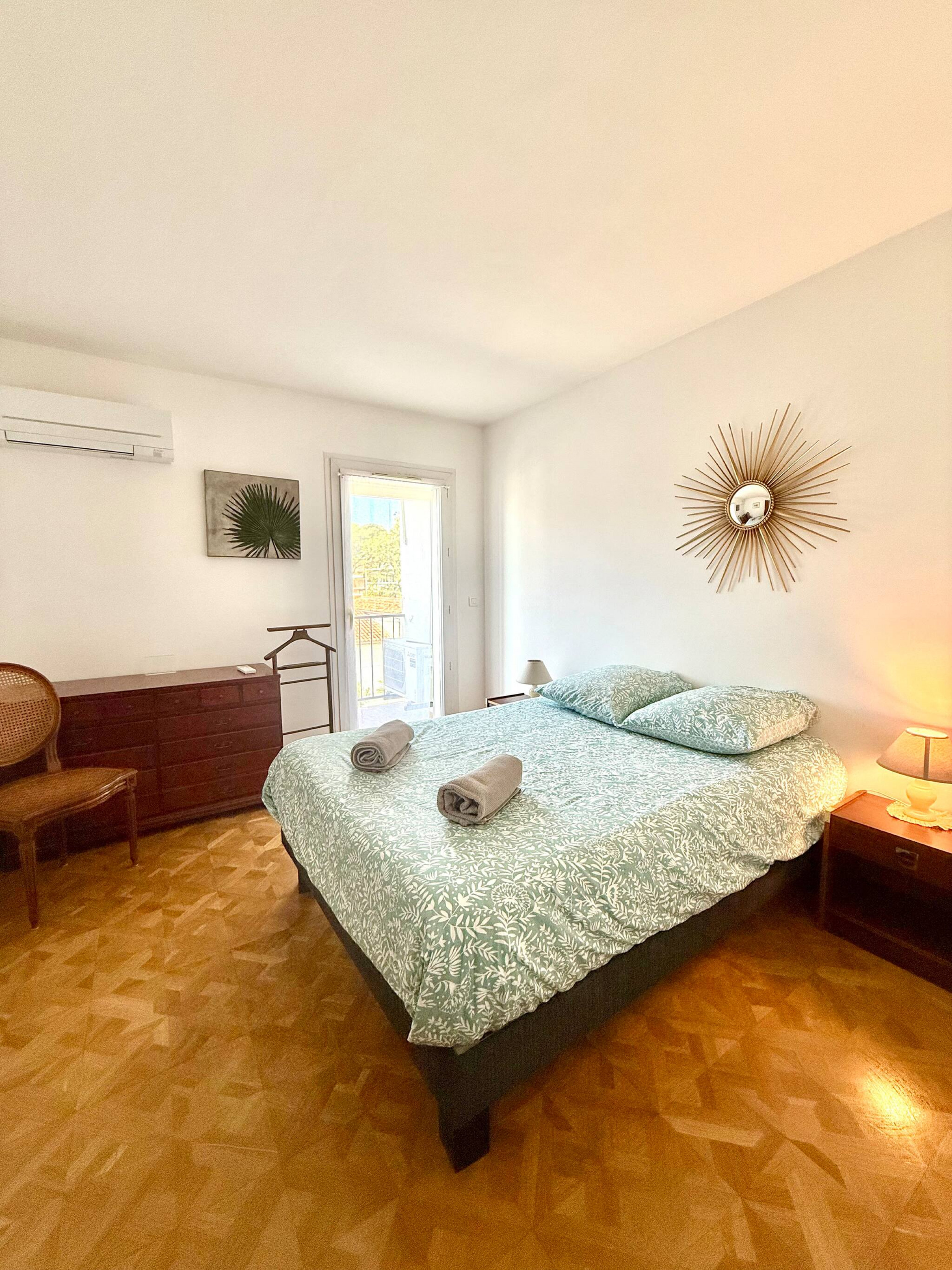 - 2 chambres : 1 avec lit double, 1 avec 2 lits simples