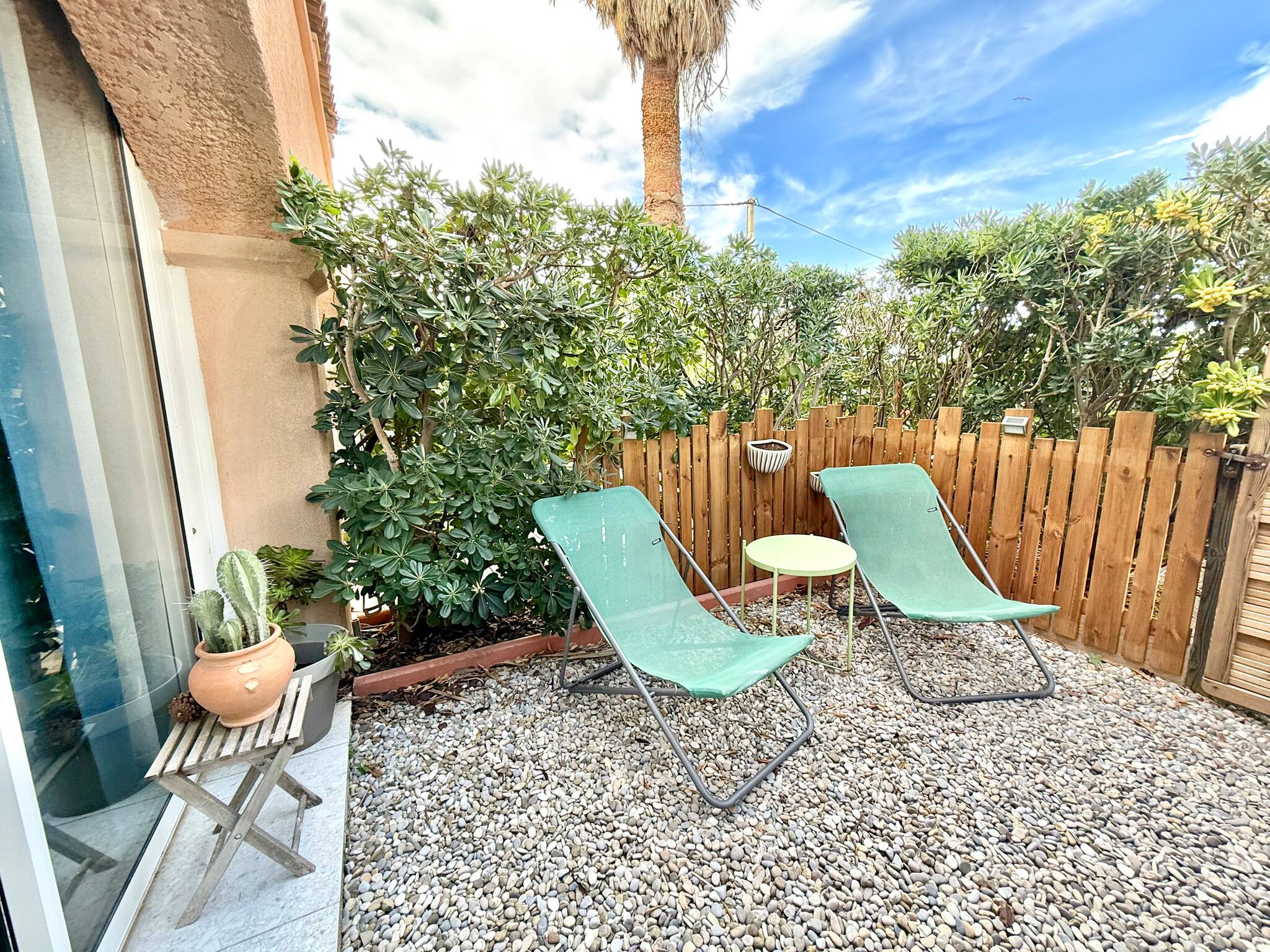 Véritable atout du logement, le jardinet est un espace de détente unique, avec salon d’extérieur, table à manger et transats pour profiter du soleil varois. Idéale pour savourer le petit-déjeuner, lire un livre ou partager un apéritif à la douce lumière du soir 🍹.