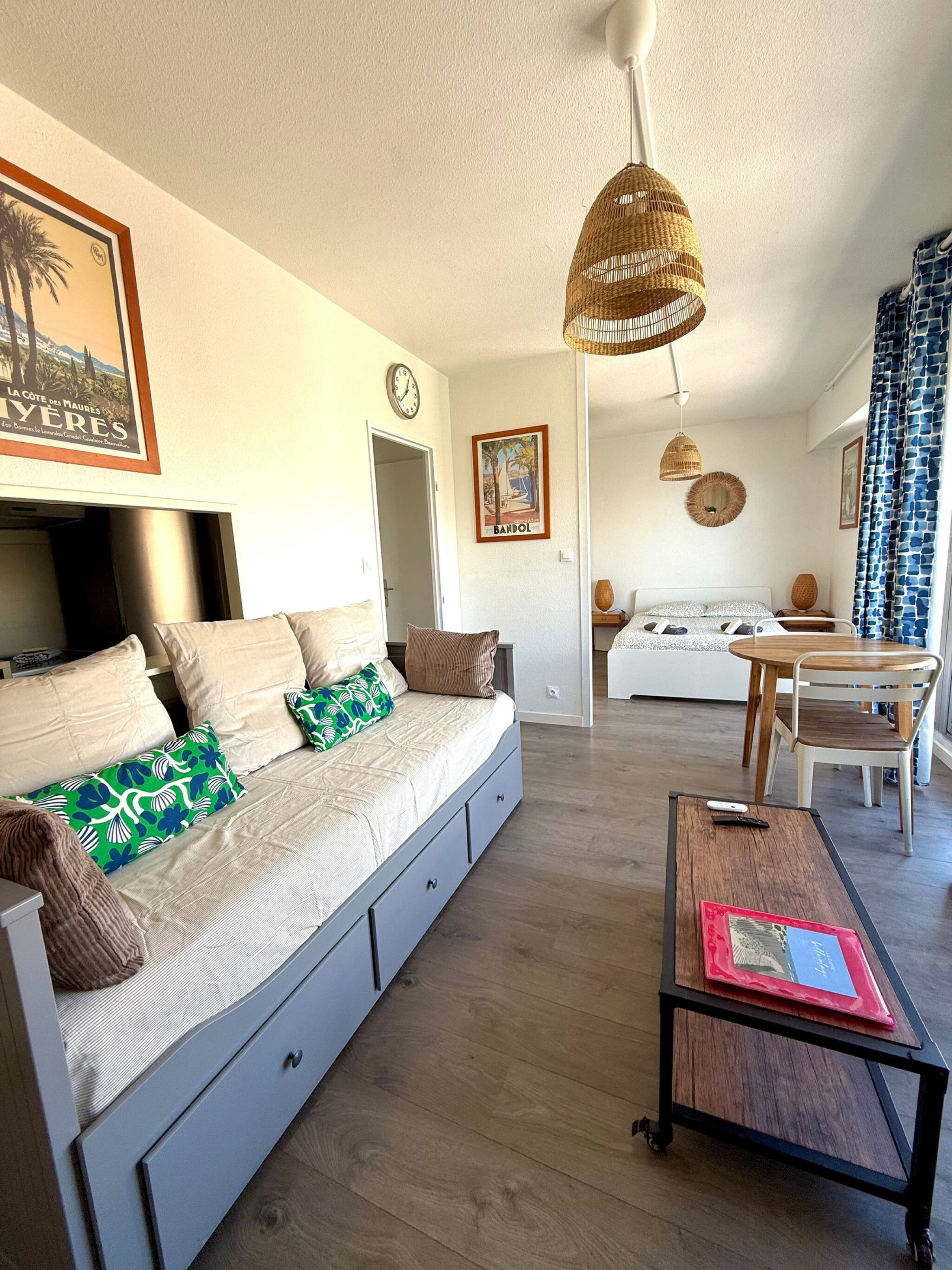 Studio refait à neuf avec clim et wifi, situé au 3e étage d’une résidence sécurisée avec ascenseur, sur le Port de Hyères. Idéal pour un séjour solo, en couple ou en famille. Emplacement top, à deux pas des plages, restos, commerces et transports. Petit balcon avec vue mer pour savourer vos petits-déjeuners au soleil