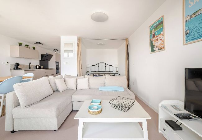 Ce logement unique de 45 m² vous offre, depuis son balcon, une pleine vue sur le port, l'île des Embiez, les plages de Six-fours et le Brusc !