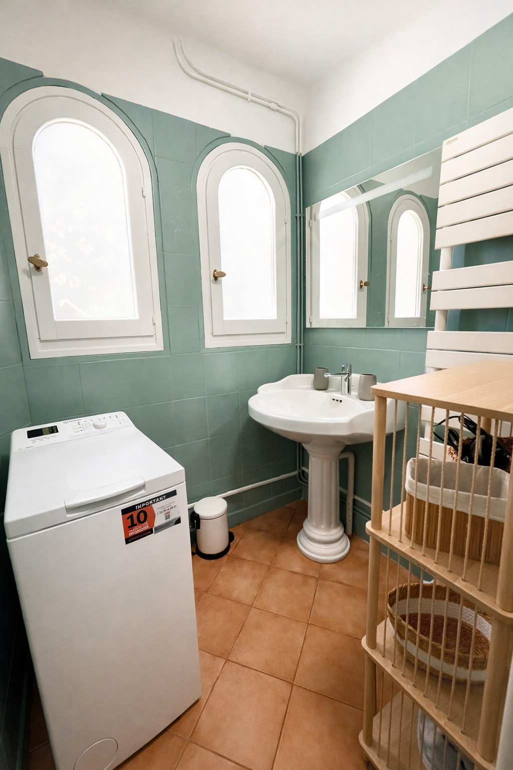 Four, micro-ondes, plaque de cuisson, réfrigérateur, cafetière, lave-linge… tout le nécessaire pour cuisiner comme à la maison.